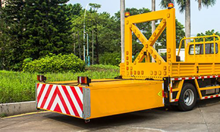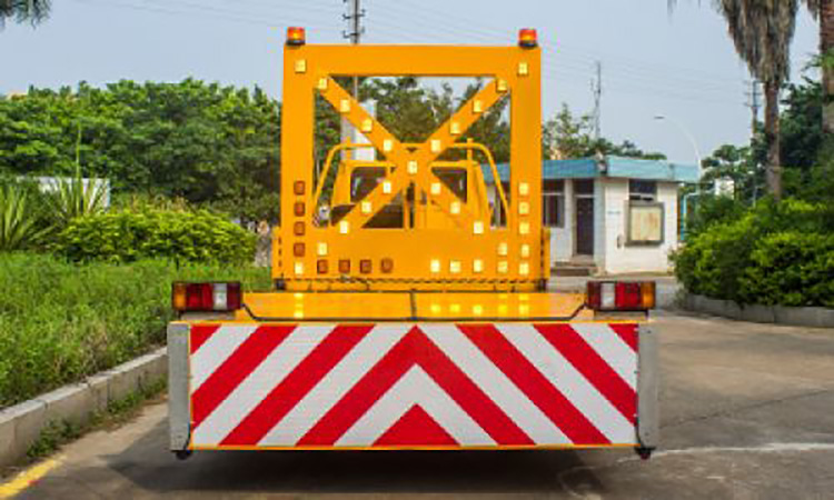 5. 有預(yù)警安全引導(dǎo)裝置,由高穿透性的LED大型箭頭標(biāo)志板組成,駕駛員根據(jù)現(xiàn)場(chǎng)情況可以切換LED箭頭標(biāo)志板的“左側(cè)通行”“右側(cè)通行”、“禁止通行”等警示導(dǎo)向指示,對(duì)過往車輛進(jìn)行主動(dòng)預(yù)警和引導(dǎo),避開施工區(qū)域。