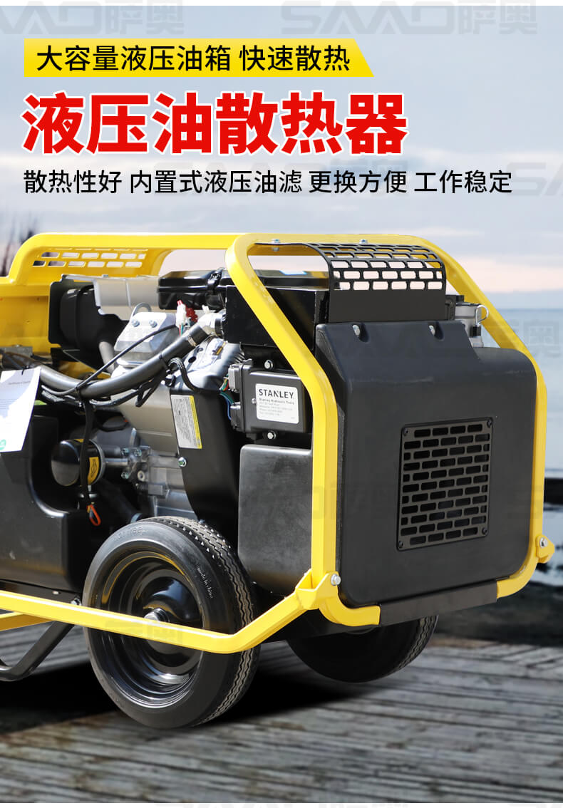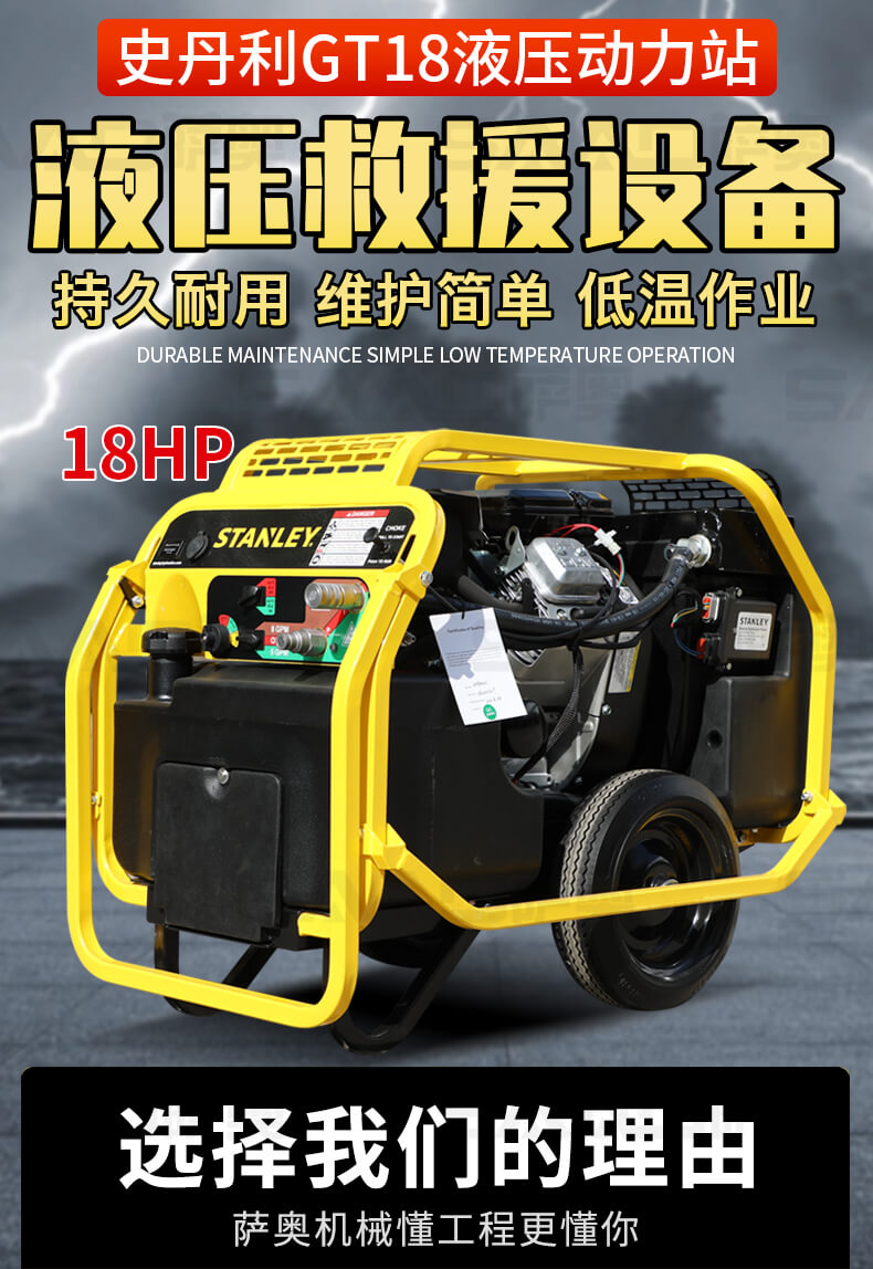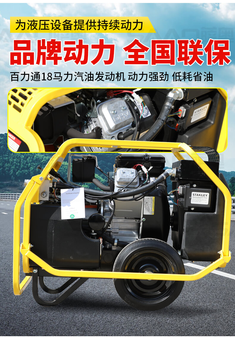 產 品介紹 GT18動力站是為液壓設備提供持續(xù)動力的,它同時滿足1類和2類液壓設備。它采用百力通18馬力汽油發(fā)動機,有良好的液壓油散熱系統(tǒng),以滿足液壓設備可以正常、持久地工作。