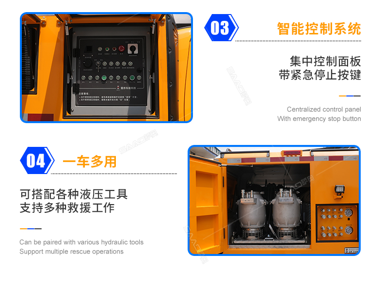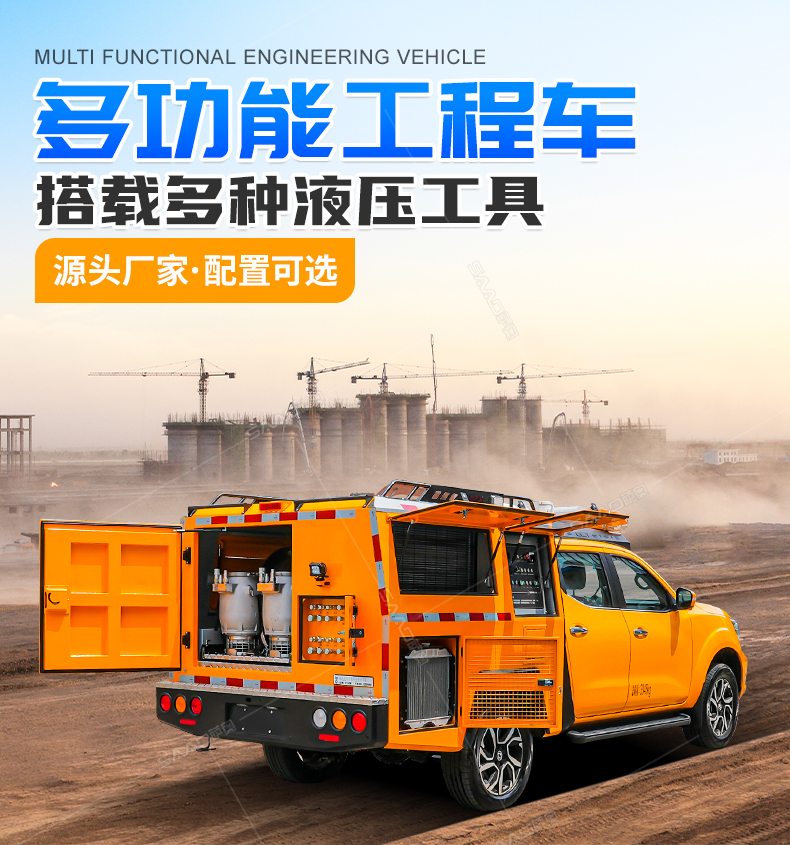 該皮卡多功能救援車作為大功率移動(dòng)式的液壓動(dòng)力源,可驅(qū)動(dòng)多達(dá)百余種不同功能的液壓工具進(jìn)行作業(yè)