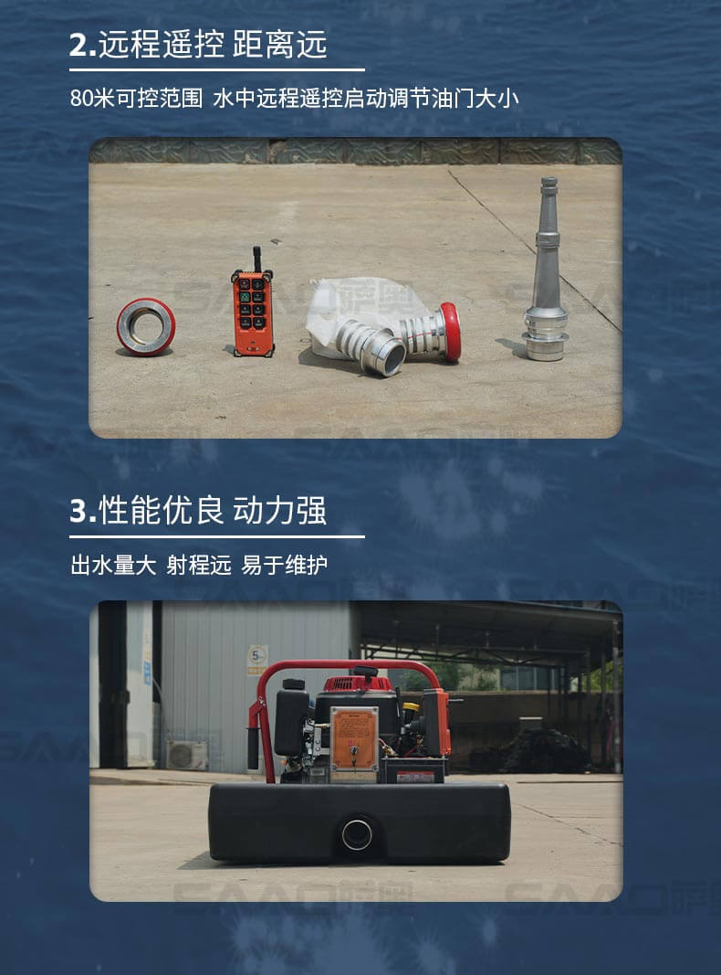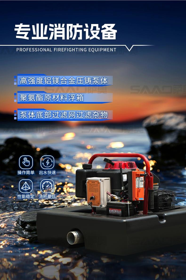 消防浮艇泵適合于城鎮(zhèn)、鄉(xiāng)村及消防車(chē)不易到達(dá)的火災(zāi)現(xiàn)場(chǎng)或臨時(shí)取水,輕量化設(shè)計(jì),聚氨酯原材料浮箱,耗油量低,操作簡(jiǎn)單。