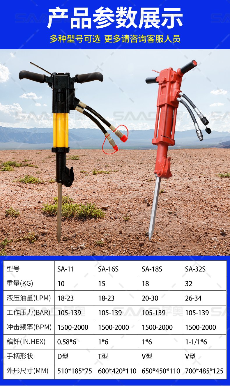 沒(méi)有哪個(gè)破碎鎬工具有液壓破碎鎬那樣的沖擊破碎能力。液壓破碎鎬的功率,在所有鎬類工具中是最高的,而其工作噪音也遠(yuǎn)比氣動(dòng)工具要小。薩奧液壓破碎鎬是您的最佳選擇。同樣系