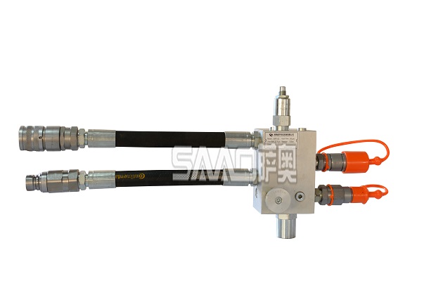 液壓分流閥用于連接液壓工具和一挖掘機(jī)、裝載機(jī)、工程車等承載設(shè)備的液壓動(dòng)力輸出端。
