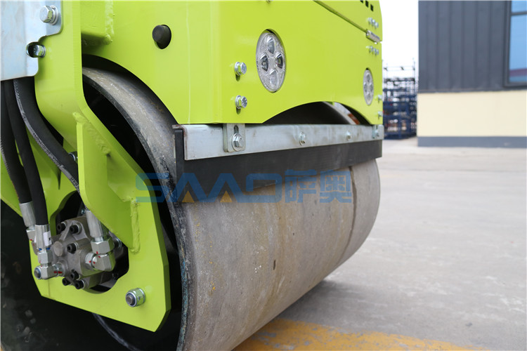 振動系統(tǒng):電磁離合振動,有獨立的振動開關(guān),壓實性好(壓實力度理論為25kn,可達27kn)。振動方式為雙驅(qū)前振,鋼輪經(jīng)過兩次鏜床加工,確保鋼輪與軸承的結(jié)合,并且經(jīng)過倒角處理,壓實無痕。
